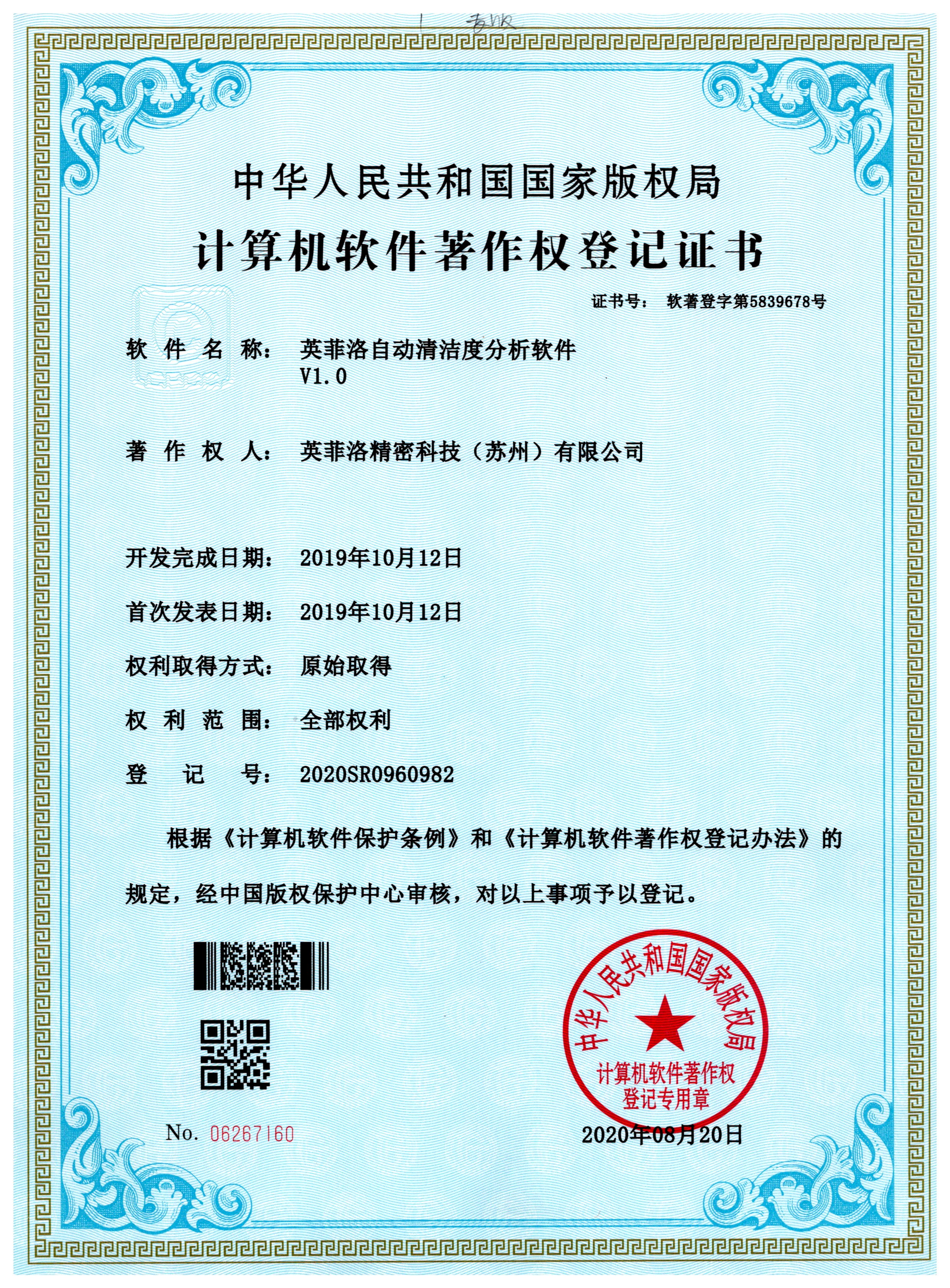 榮譽(yù)資質(zhì) > 英菲洛自動(dòng)清潔度分析軟件