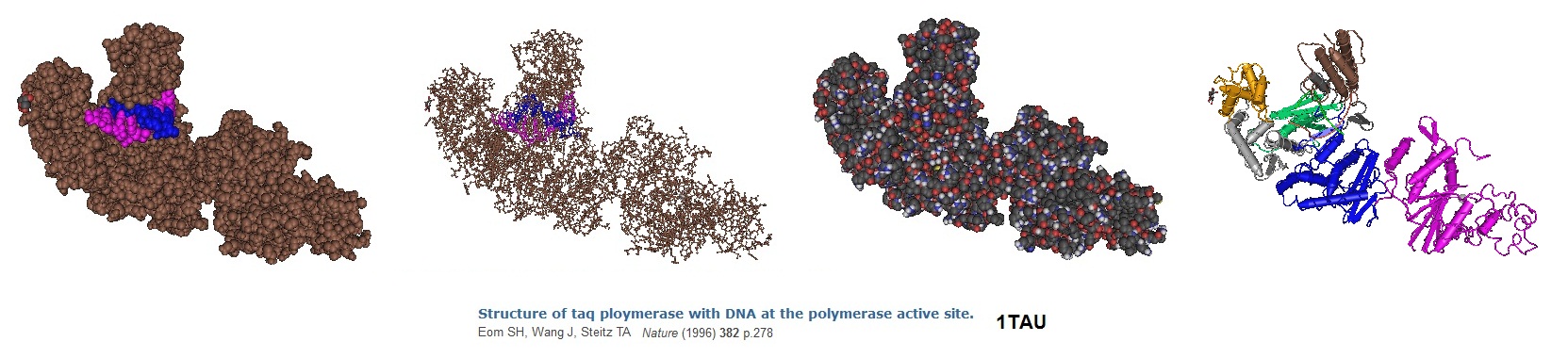 1. Eom SH, Wang J, Steitz TA.; Structure of Taq polymerase with DNA at the polymerase active site. Nature. 1996 Jul 18; 382(6588):278-81.