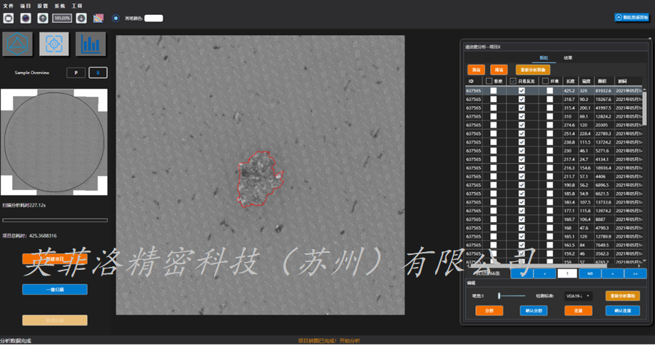 i/ 自動掃描,無縫拼接技術(shù),可實現(xiàn)每個顆粒定位回看,保證顆粒無誤判